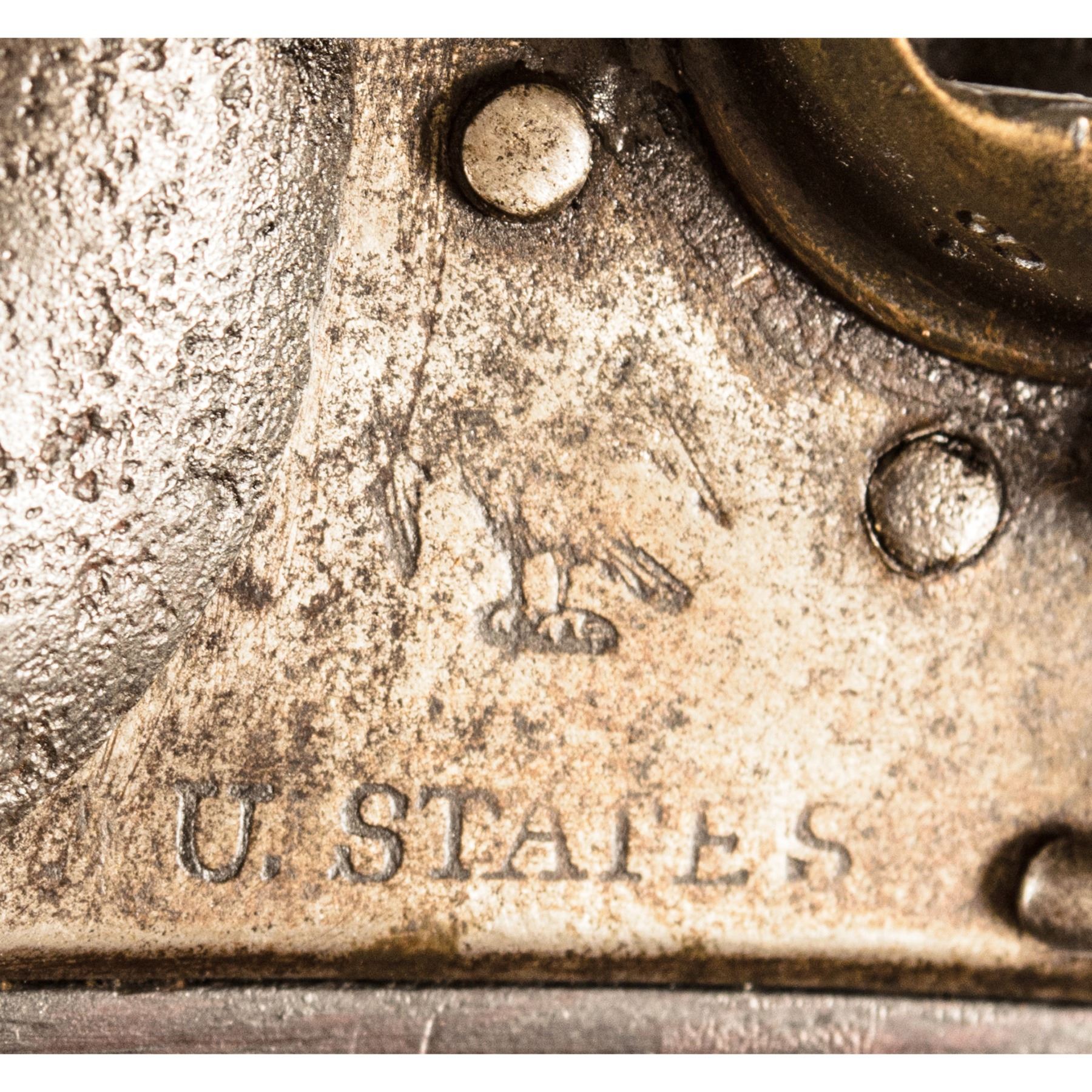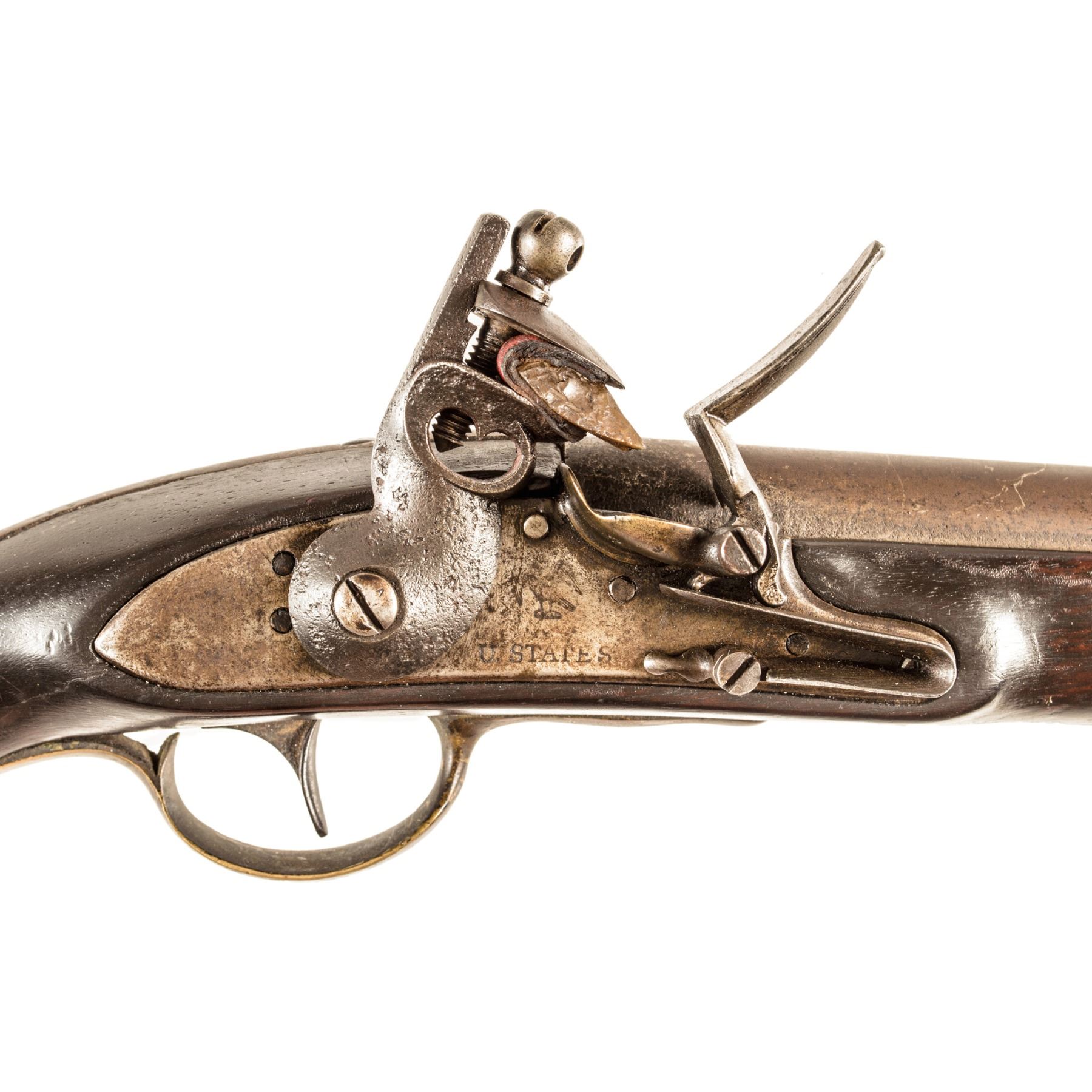 A very rare U.S. Flintlock Martial Pistol that is attractive and in good mechanical working order, measuring 16.75" long overall. This Rare, U.S. Navy Model 1808 Contract Flintlock Ship's Pistol is complete with belt hook, made by and marked, “S. NORTH, BERLIN, CON.”. It has a 9.75”, .68 caliber round Iron unmarked barrel. Only 3,000 of these Flintlock Ship’s Pistols were produced. Its Lock is marked with an attractive American Federal Heraldic Eagle, with “U. STATES”, “S. NORTH, BERLIN, CON.” Appears professionally reconverted/restored using original period parts. The Stock is solid with period old wood repairs that are actually very hard to detect at the right side of the fore-end, with typical slight scratches and minor dings from years of actual service.