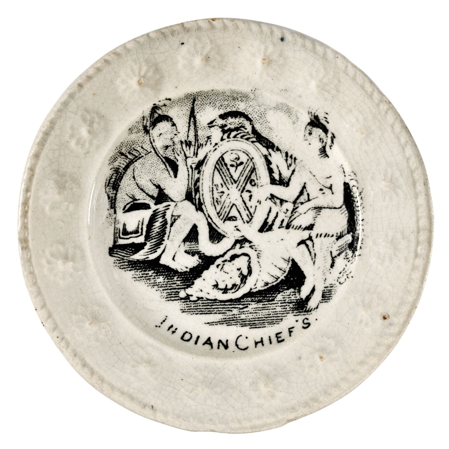 c. 1810-1830 Native American “Indian Chiefs” Transfer Image Saucerette, Mint.