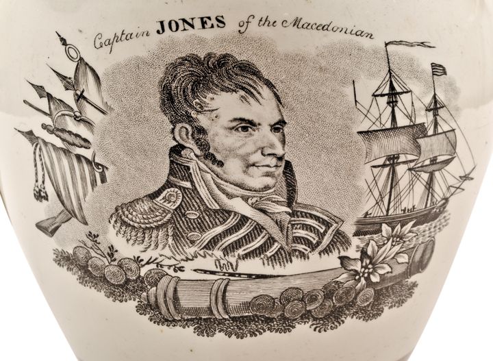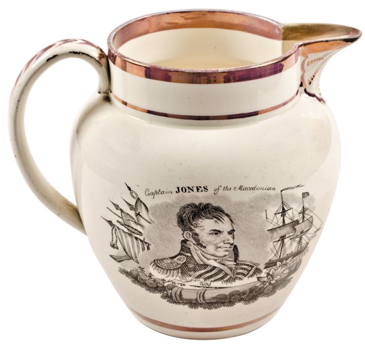 c. 1815 Rare War of 1812 Theme & Period, Historic Patriotic Strawberry Luster Pitcher, with Two Important American Patriotic Transfers, General Washington Departed This Life Dec 14th 1799...,” and “Captain Jones of the Macedonian,” Choice Extremely Fine.