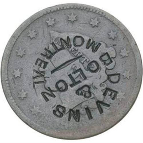 c. 1816-1839 Large Cent, Counter-Stamped "DEVINS & BOLTON / MONTREAL", About Fine.