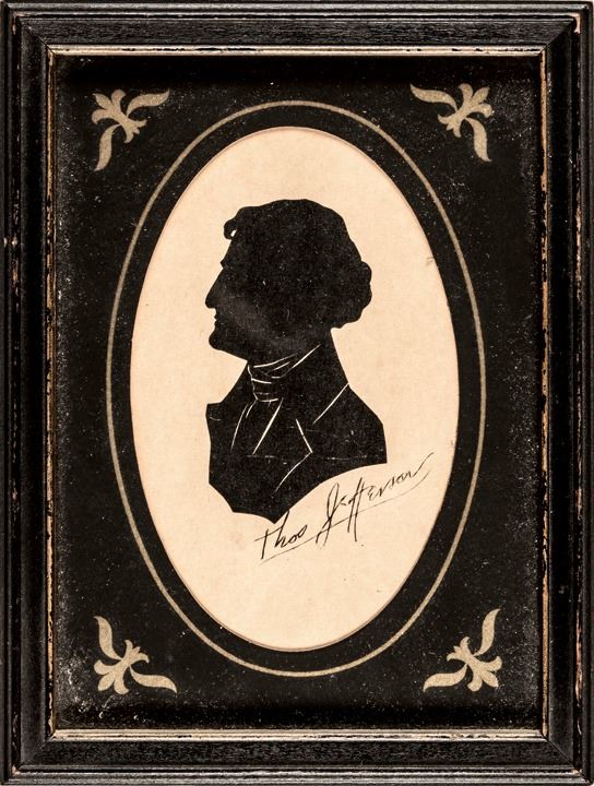 c. 1820 first half of the 19th century, Decorative Framed Silhouette Portrait of Thomas Jefferson, 3rd President of the United States, Founding Father and Principal Author of the Declaration of Independence, Choice Very Fine.