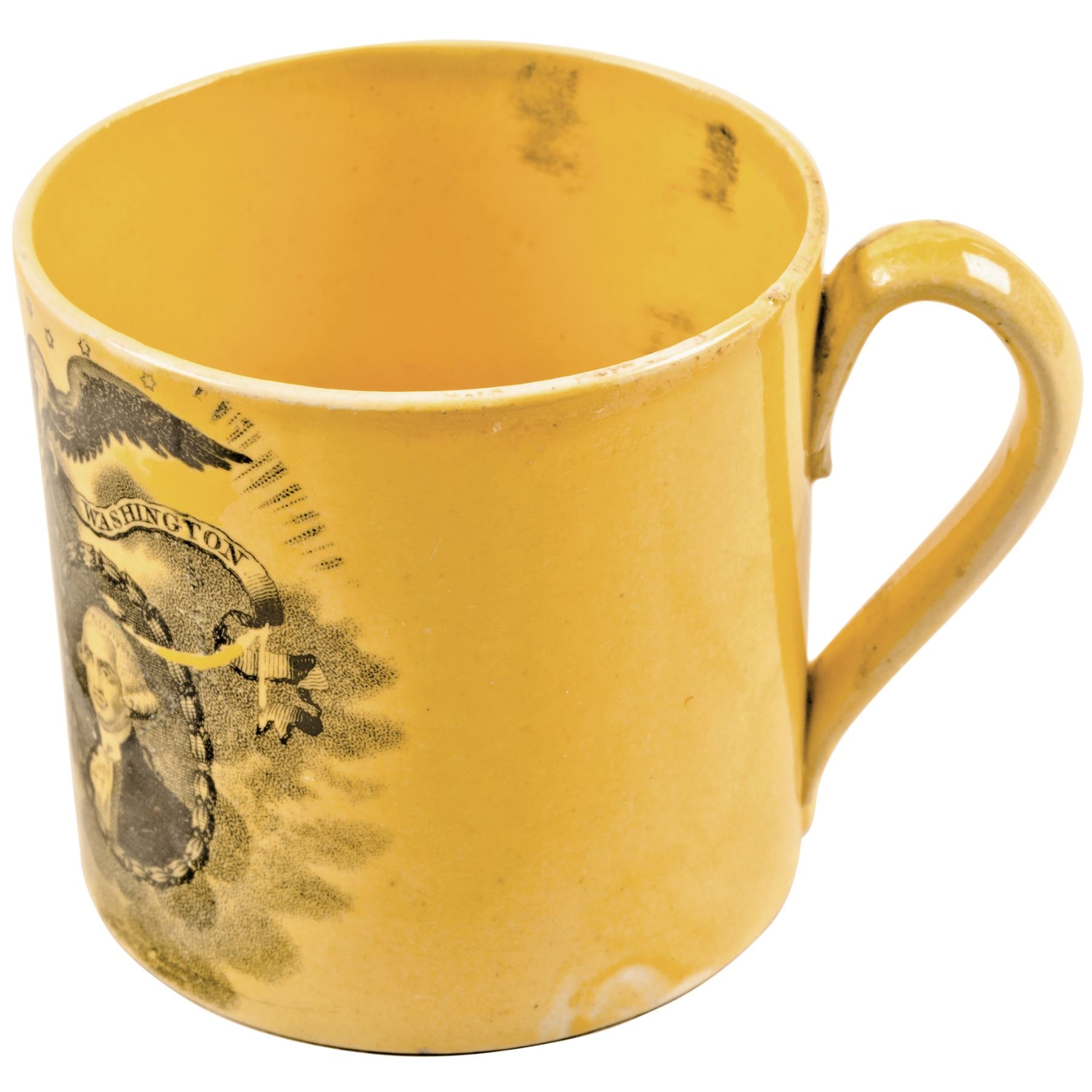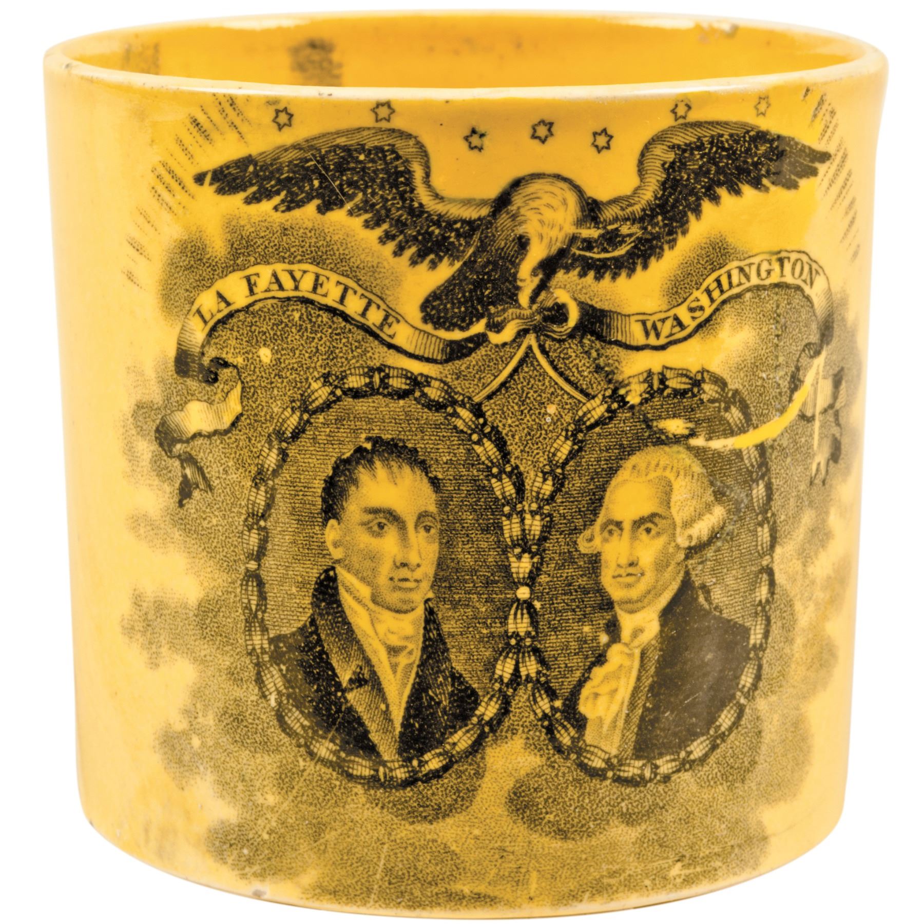 c. 1824 Lafayette’s Tour of America Commemorative Canary Yellow Creamware Mug