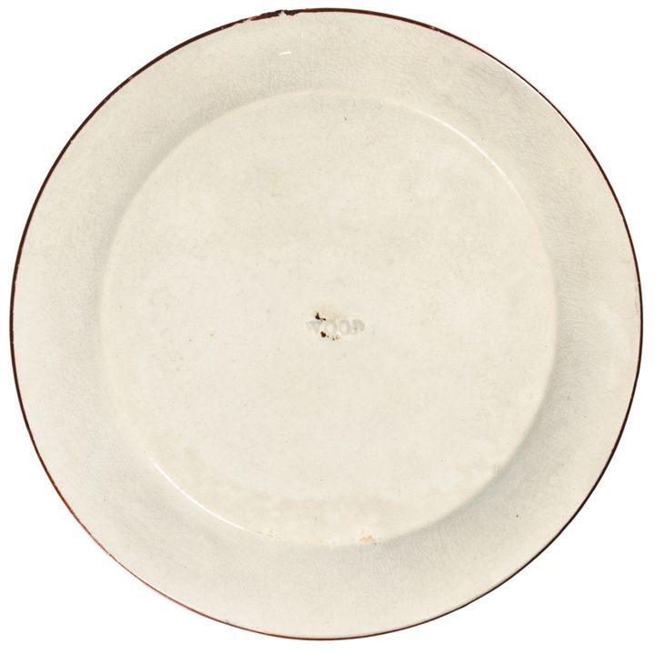 This attractive 3.75” diameter Andrew Jackson Presidential Campaign Cup Plate was produced by Enoch Wood of England. Excellent in quality having a few natural transfer skips, as made. This version similar to the transfer listed as J.6 and shown on page 112 of David Arman’s wonderful reference book, “Anglo-American Ceramics Part I.” The more common variety has a simple rust-colored transfer. This very rare plate has the legend below Jackson’s Bust Portrait reading, “General Jackson Hero of New Orleans” with a rust color decorative outer rim border with a black transfer upon the white plate.