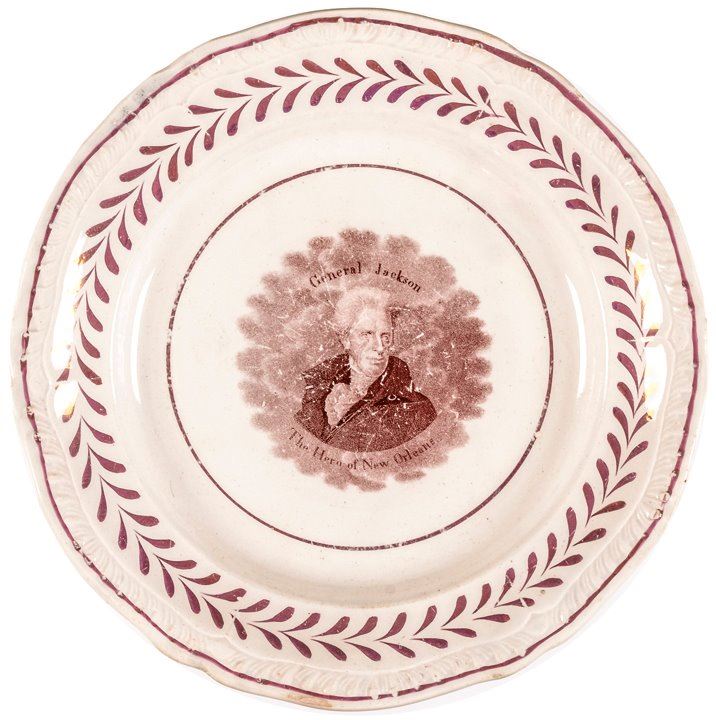 c. 1828, Andrew Jackson Presidential Campaign Portrait Pearlware Plate, “General Jackson - The Hero of New Orleans” by Enoch Wood, England, Choice Extremely Fine.