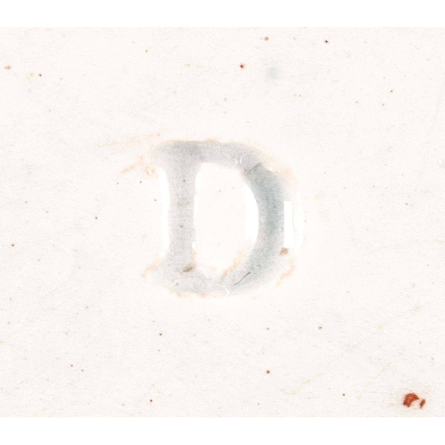 This Patriotic Plate measures about 8.25” in diameter. A blue feather edge pearlware plate with a wonderful bright and colorful American Eagle with Heraldic Shield central decoration, 13 Stars are in the field about the Eagle’s head and wings. There is an impressed “D” to back, with some old display mounting which appears to be easily removable. This design is apparently not listed in the David Armen reference. A beautiful vibrant example, great looking for display.