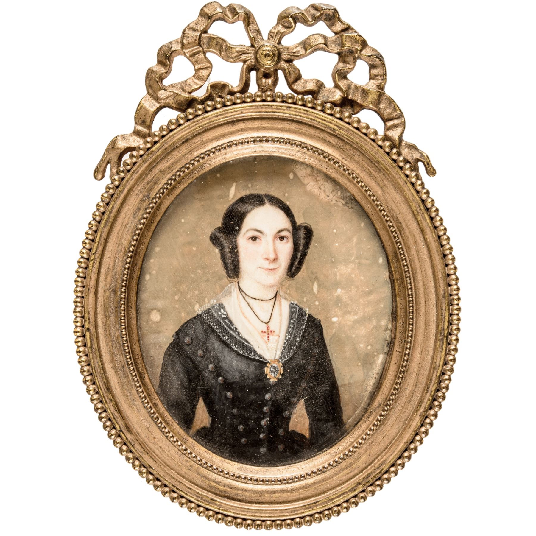 Hand-Painted Miniature Oval Portrait of a Christian Woman