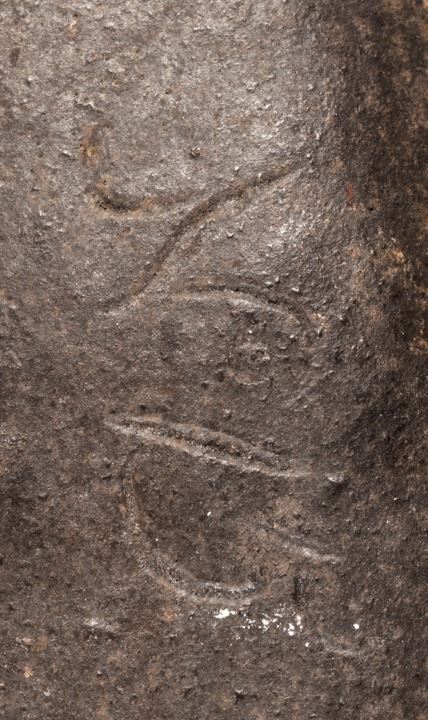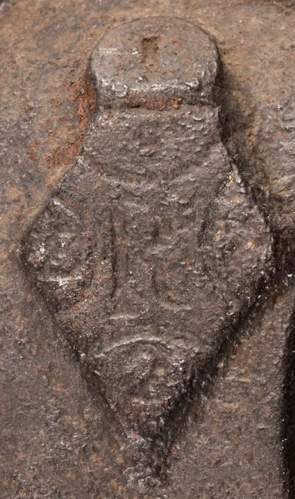 c. 1847 Heavy Cast Iron Eagle and Snake Doorstop, measuring a large 14” tall x 7.5” wide, it is modeled as a fierce looking American Eagle with his partially outstretched wings defiantly standing on rocks, with an entwined large nasty looking snake feature at its lower breast being extended for decorative use as the top handle. The back side casting shows the diamond shaped English registration mark and has the year letter at top (I) being the designation for the year 1847. Also has “No. 15” most probably the cast number. Overall light wear, has a great looking natural patina with sharp details. A likely patriotic piece made for export to America during the War with Mexico period.