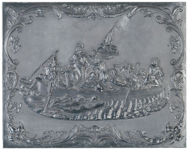 c.1850-80 Decorative Gutta Percha Plaque Washington Crossing The Delaware