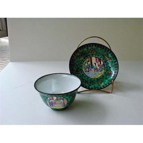 CHINA EXPORT ENAMELWARE Green Enamel Tea cup and saucer