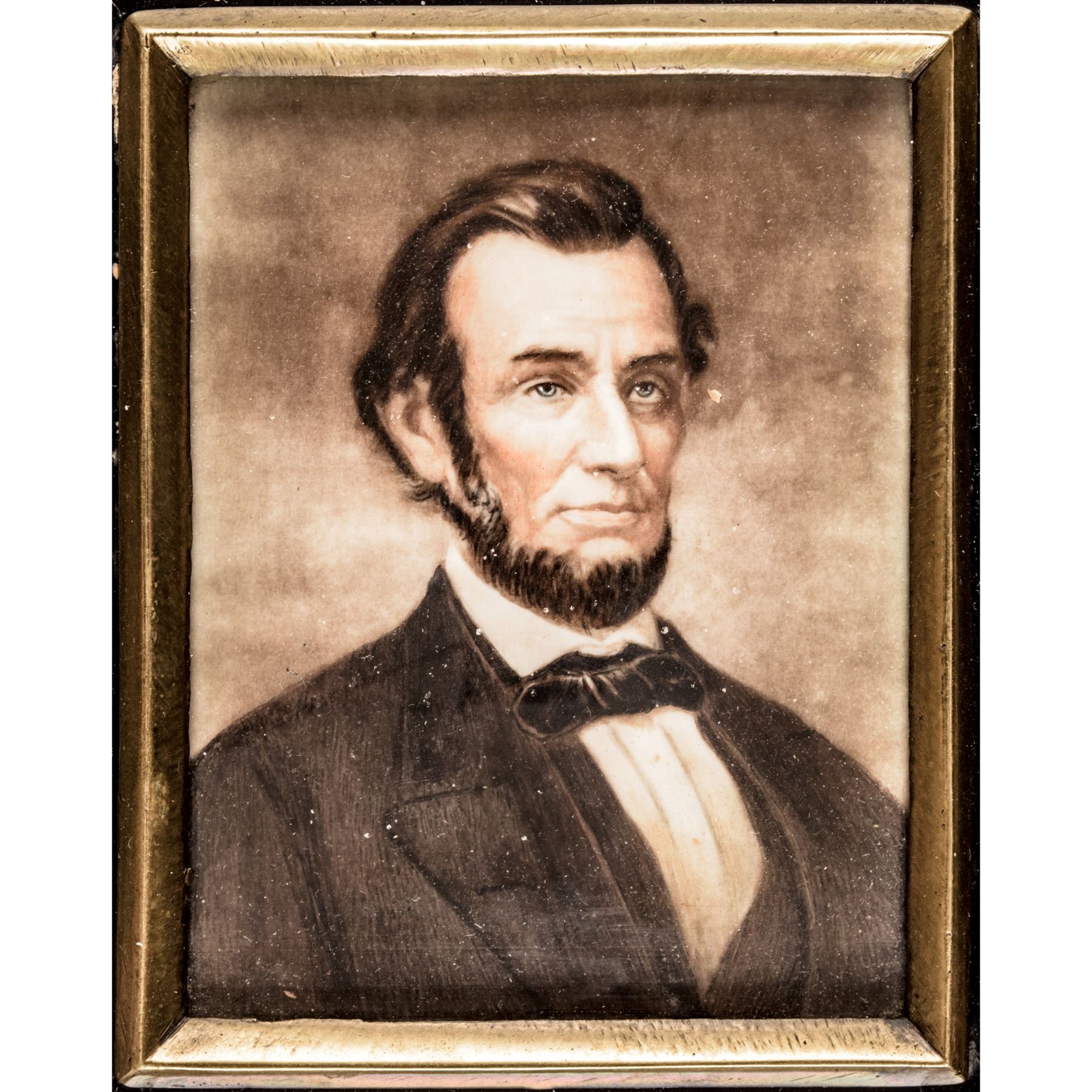 c. 1860s Civil War Era, Miniature Hand-Painted Portrait, President Abraham Lincoln, Period Frame, Choice Extremely Fine.