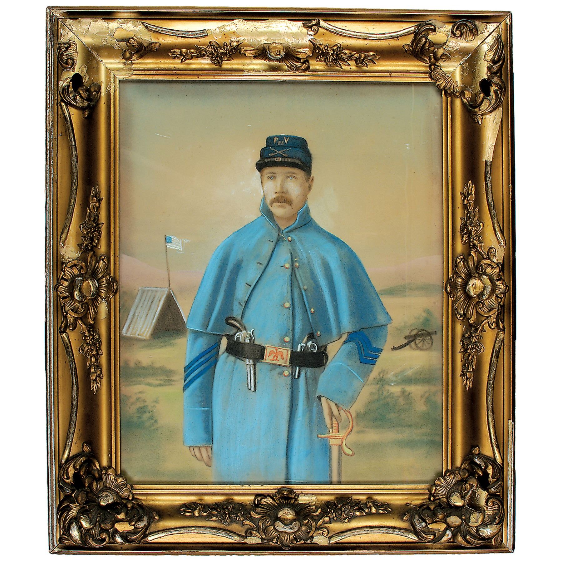 c. 1860s Civil War Era, Original Artwork, Hand-Drawn Colorful Chalk Drawing of a Civil War Pennsylvania Union Army Volunteer Soldier of the 88th Regiment, Choice Extremely Fine.