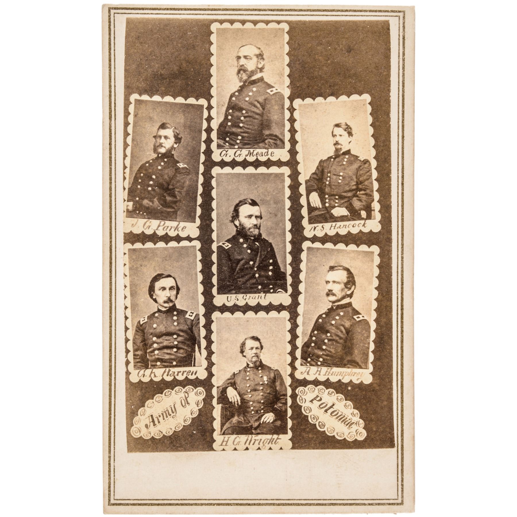 c. 1863 Civil War, Carte de Visite Photograph, titled “Army of Potomac”, Collage of 7 High Ranking Union Army Officers, Brady images Published by E.& H.T. Anthony, Choice Extremely Fine.