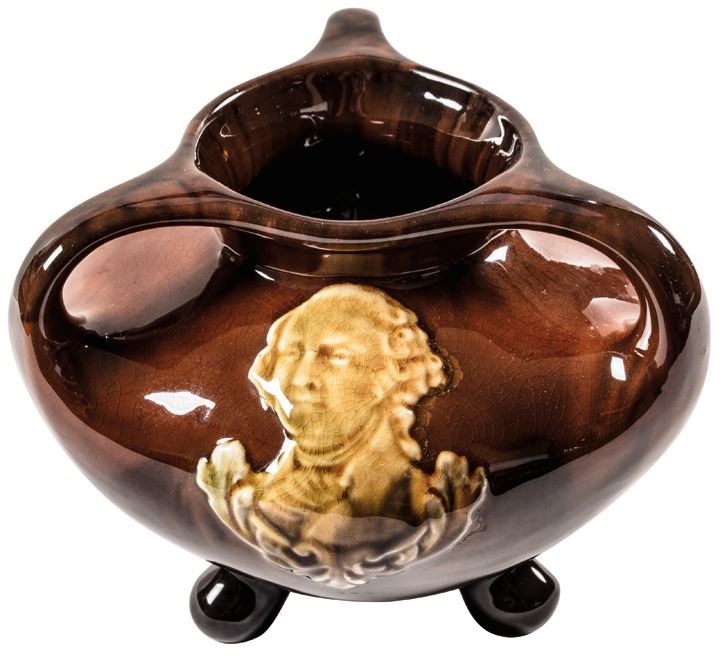 c. 1870-80s Likely Centennial Era, Tri-footed Redware George Washington Portrait Vase, Choice Extremely Fine.