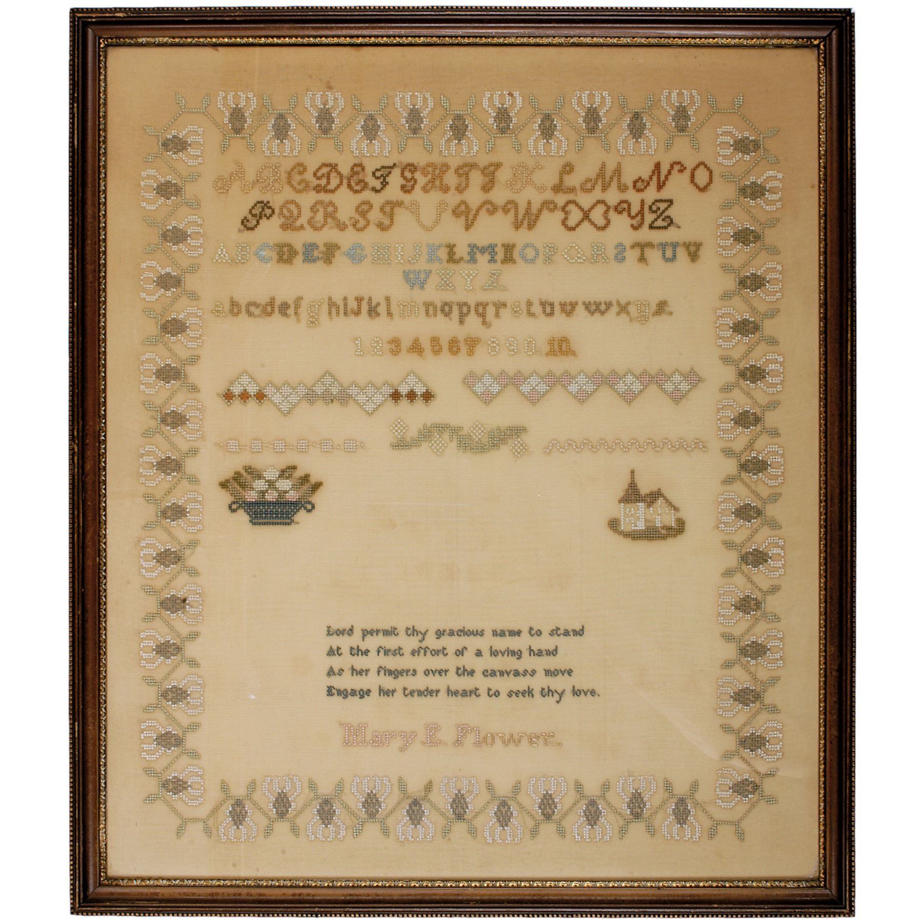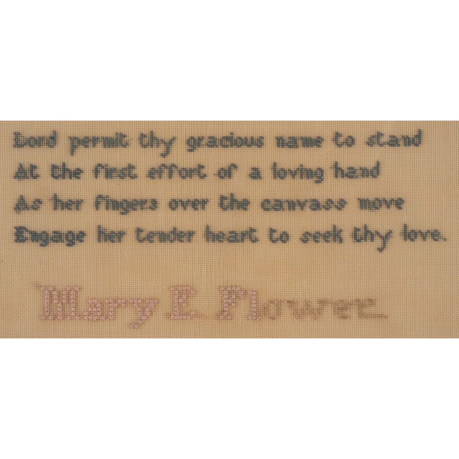 c. 1870, Sampler, Signed “Mary E. Flower,” Prayer Verse and Text, Choice Extremely Fine.