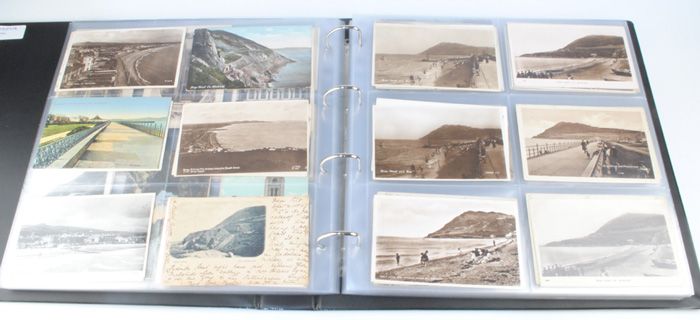 A beautifully presented collection of 360 postcards of County Wicklow in an album. Mainly a mixture of topographical and holiday postcards. Areas covered include Arklow, Avoca, Delgany, Bray, Powerscourt, Enniskerry, Glendalough, Wicklow etc. (360 items)