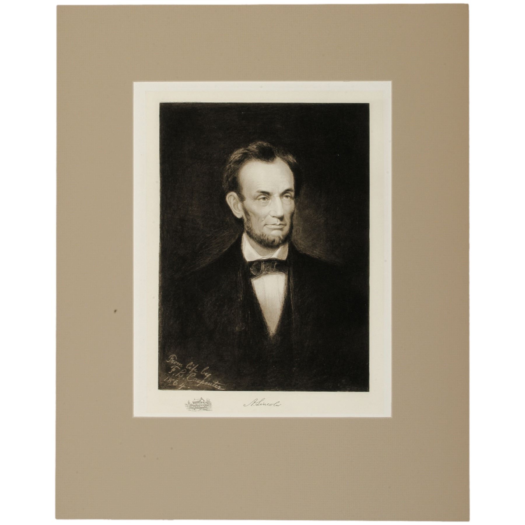Copy of an Original 1864 Charcoal Drawing of Abraham Lincoln from Life by F.B. Carpenter Produced c. 1901