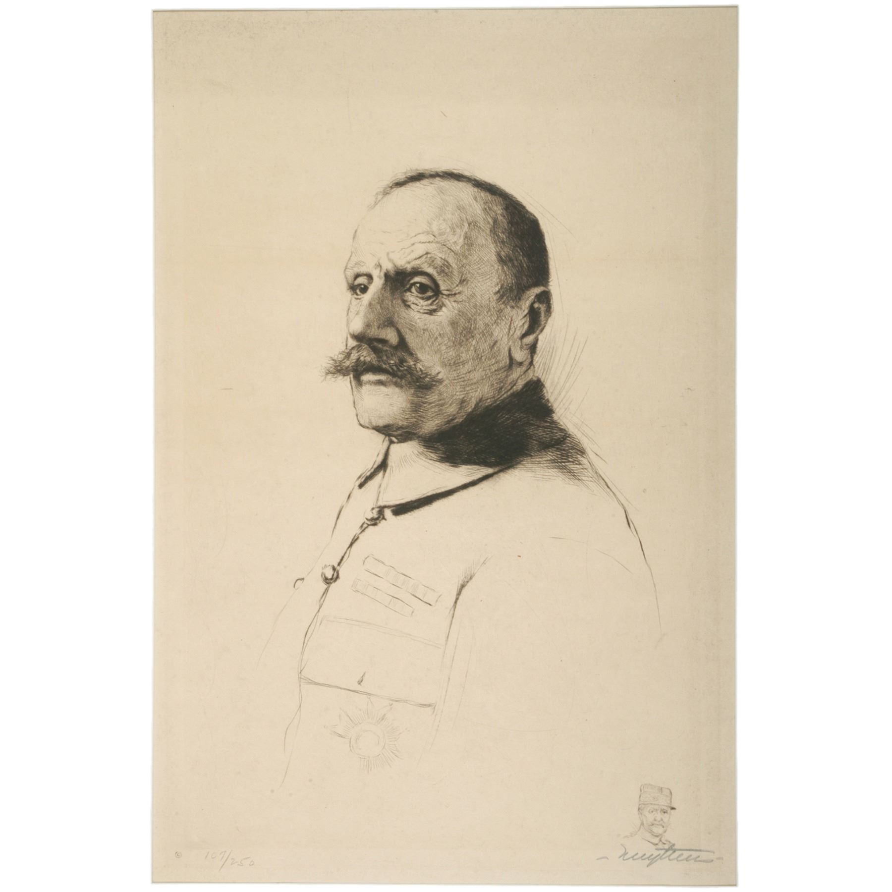 c. 1916 WWI, Impressive Artist Signed Copper Plate Engraving, Portrait of French Officer Signed, “Mufteers,” Choice Extremely Fine.