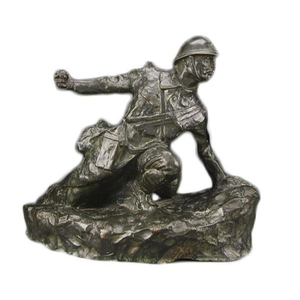 Signed Alphonse Grebel ( American 1885-1968 ) " In the Trenches" circa 1918 bronze with patina, inscribed on base ~ A. Grebel ~ with foundry mark. Height 9 1/2".