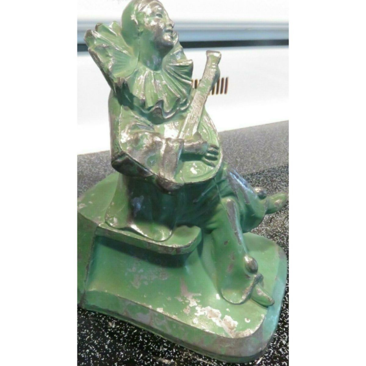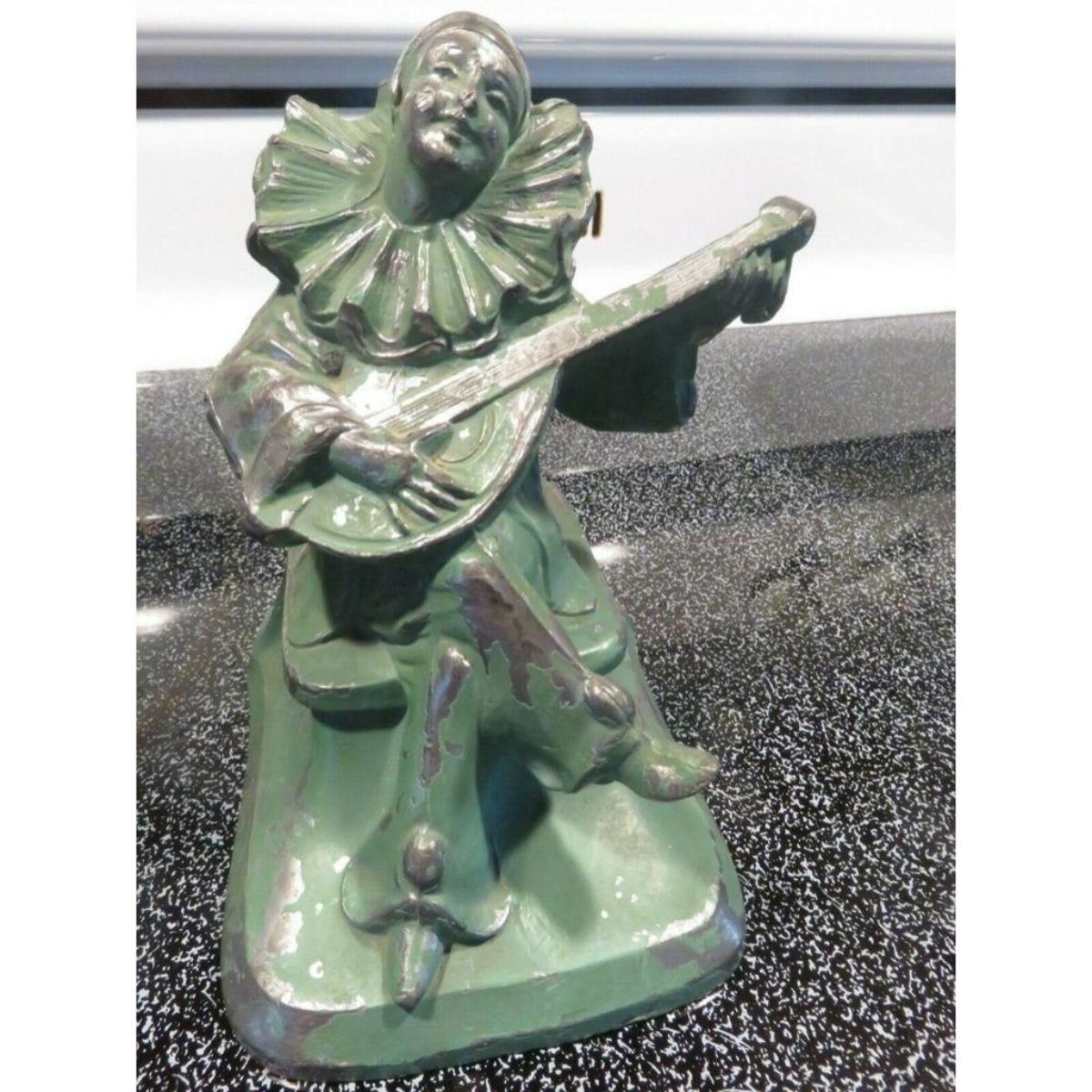 c.1932 J.B. Hirsch Co. painted spelter figure of a pierrot playing a mandolin. 5" H.c
