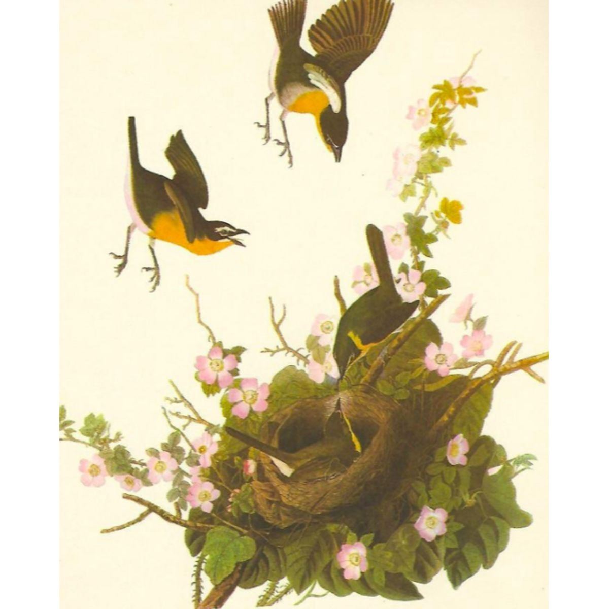 c.1950 Audubon print, Yellow-Breasted Chat - vintage print, from the collection, " Audubon - Fifty Selections With Commentaries by Roger Tory Peterson". 9" X 12" print size. Comes with 11" X 14" mat board.