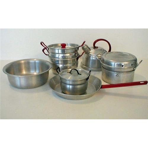 c. 1950's, adorable 12-piece set of miniature pots & pans, made in
