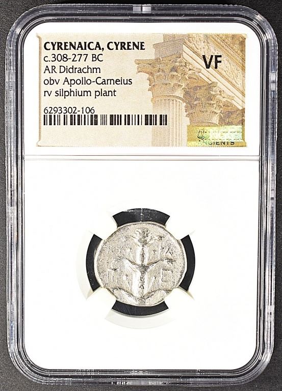 c.308-227 BC AR DIDRACHM CYRENAICA, CYRENE NGC VF