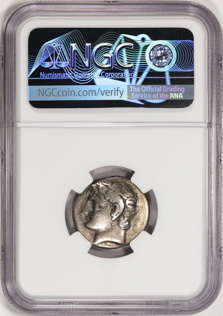 One c.308-277 BC Cyrenaic Cyrene AR Didrachm Ancient Coin NGC VF. NGC Certified.