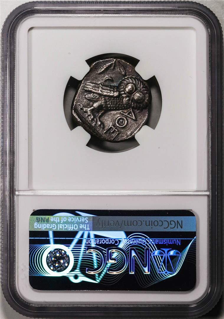 One c.393-294 BC Attica Athens AR Tetradrachm Athena Owl Ancient Coin NGC VF. NGC Certified.