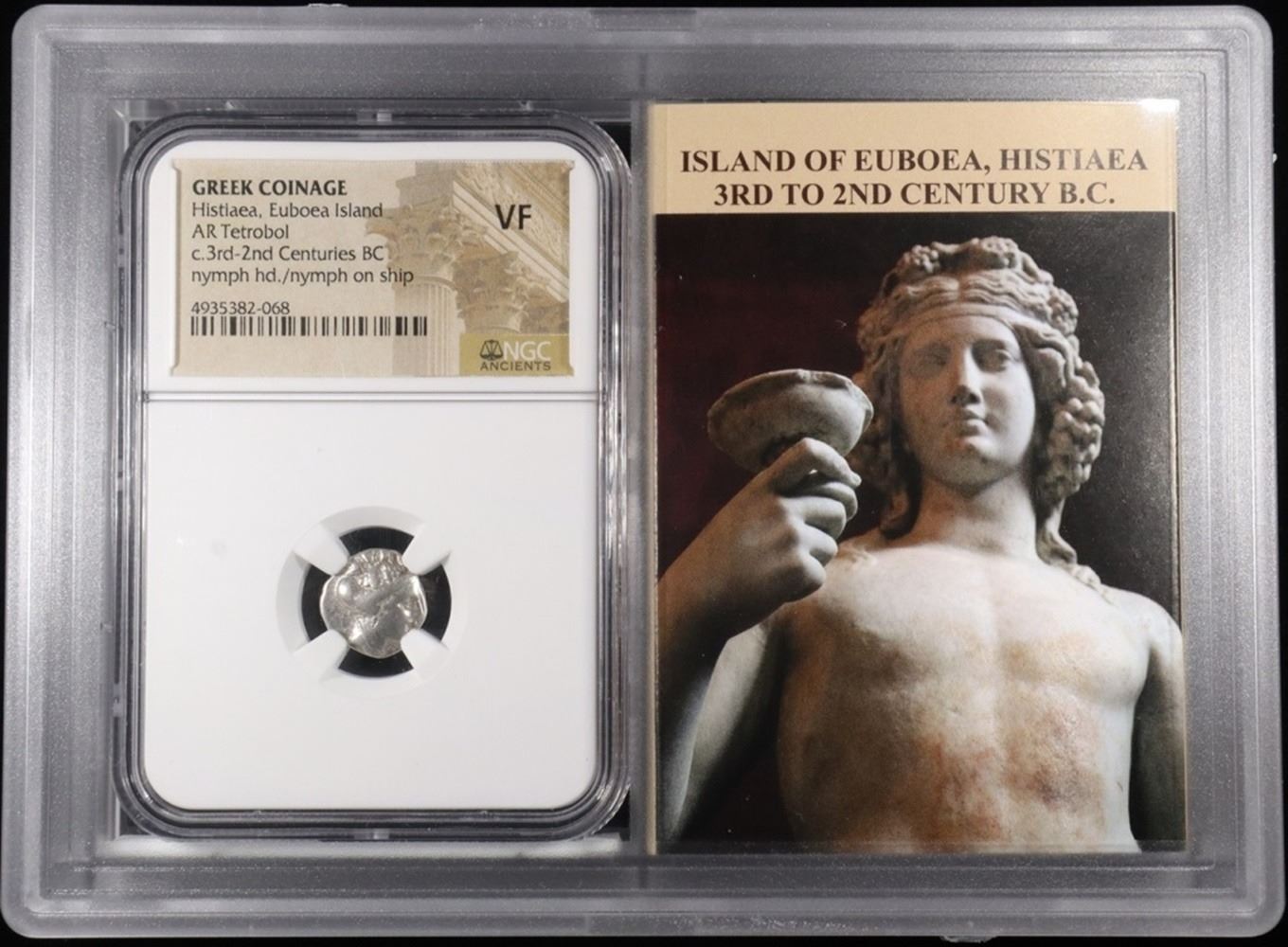 GREEK COINAGE, HISTIAEA, EUBOEA ISLAND, NYMPH  HD./NYMPH ON SHIP ESTIMATE $200 - $250.