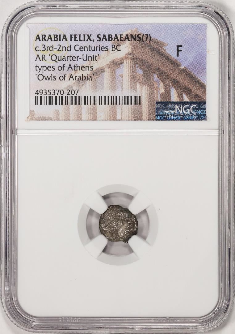 One c.3rd-2nd centuries BC Arabia Felix Sabeans AR Quarter-Unit Ancient Coin NGC F. NGC Certified.