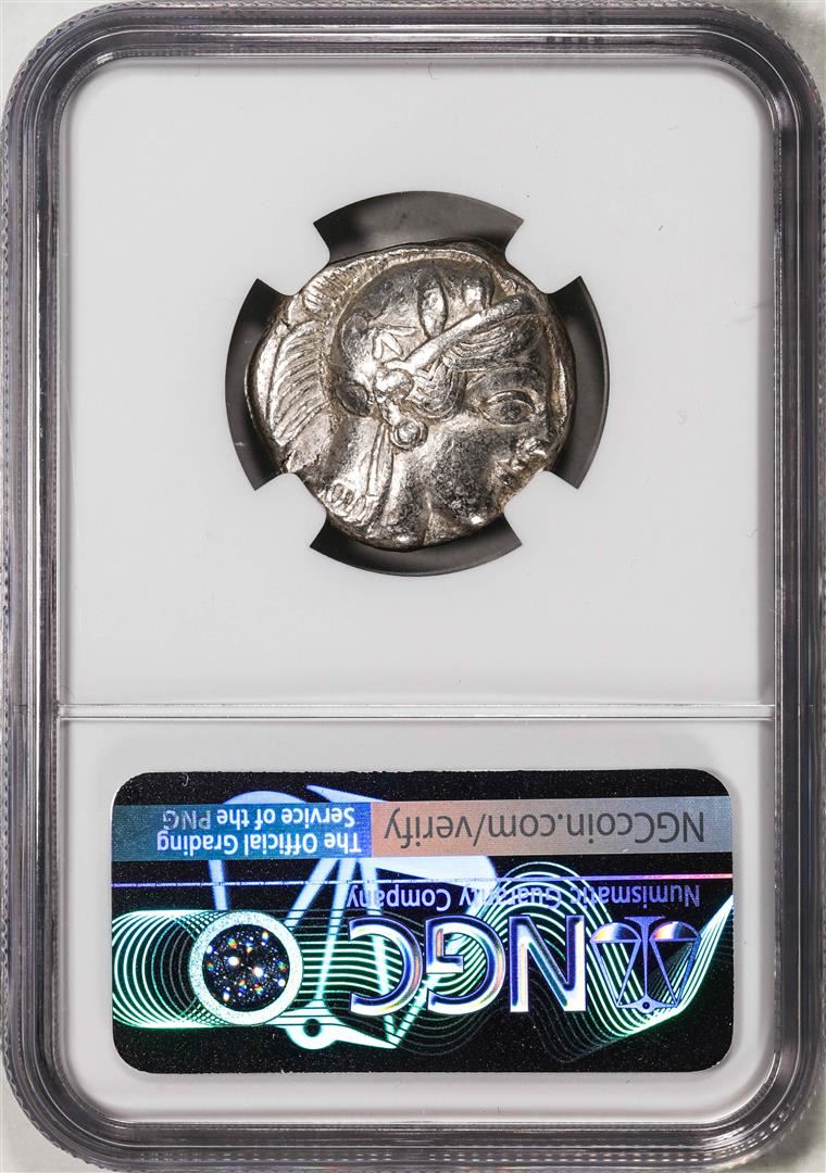 One c.440-404 BC Attica Athens AR Tetradrachm Athena Owl Ancient Coin NGC Ch VF. NGC Certified.