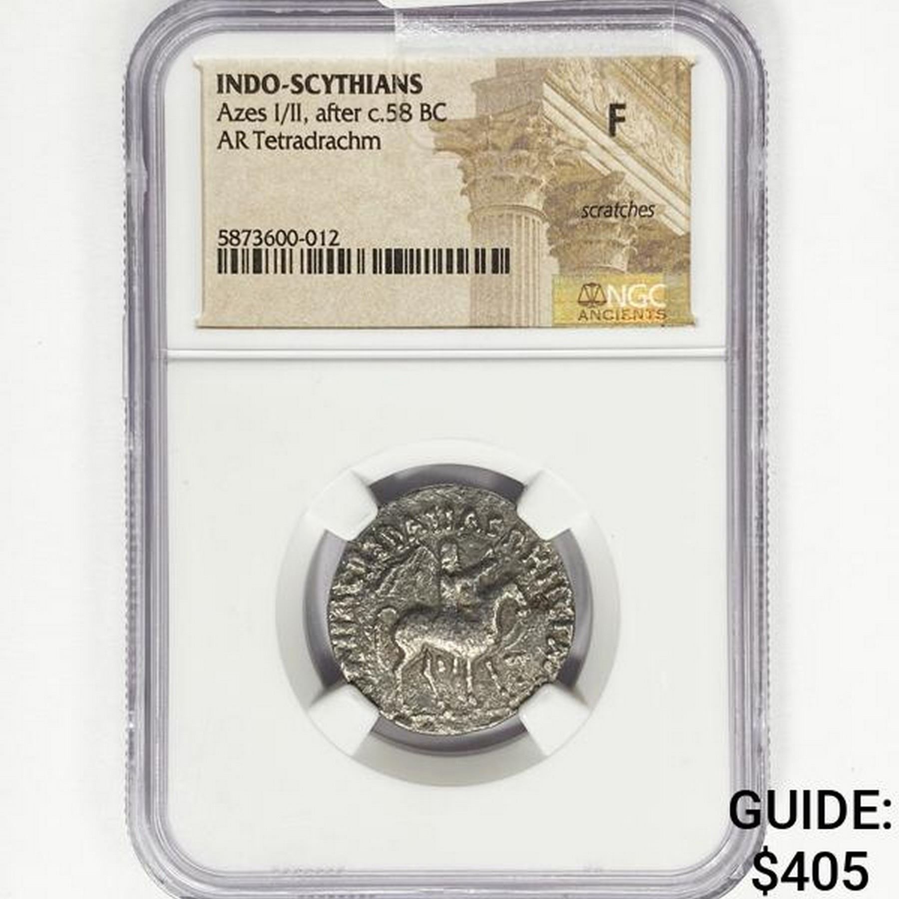 c.58 BC Indo-Scythians AR Tetradrachm NGC F