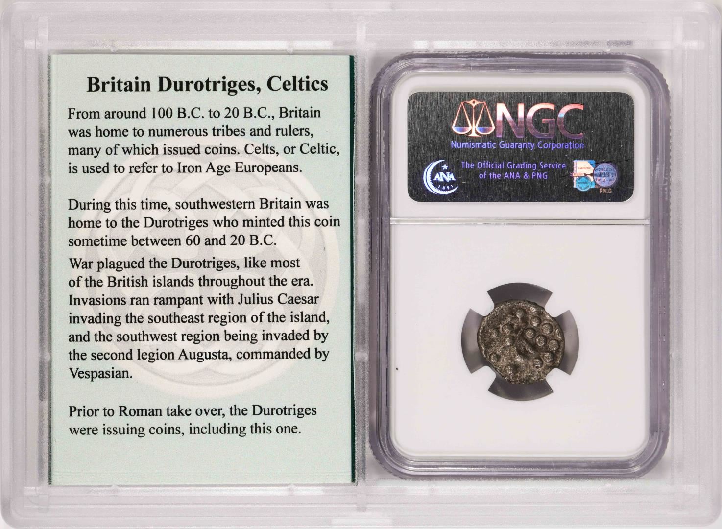 c.60-20 BC Britain Durotriges Bi Stater Ancient Coin NGC XF Story Box
