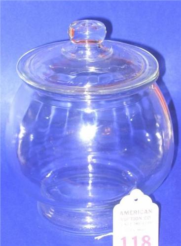 Clear glass, lidded round glass candy jar, c1920's. 8"tx6"diam. 3lbs. (5-118)