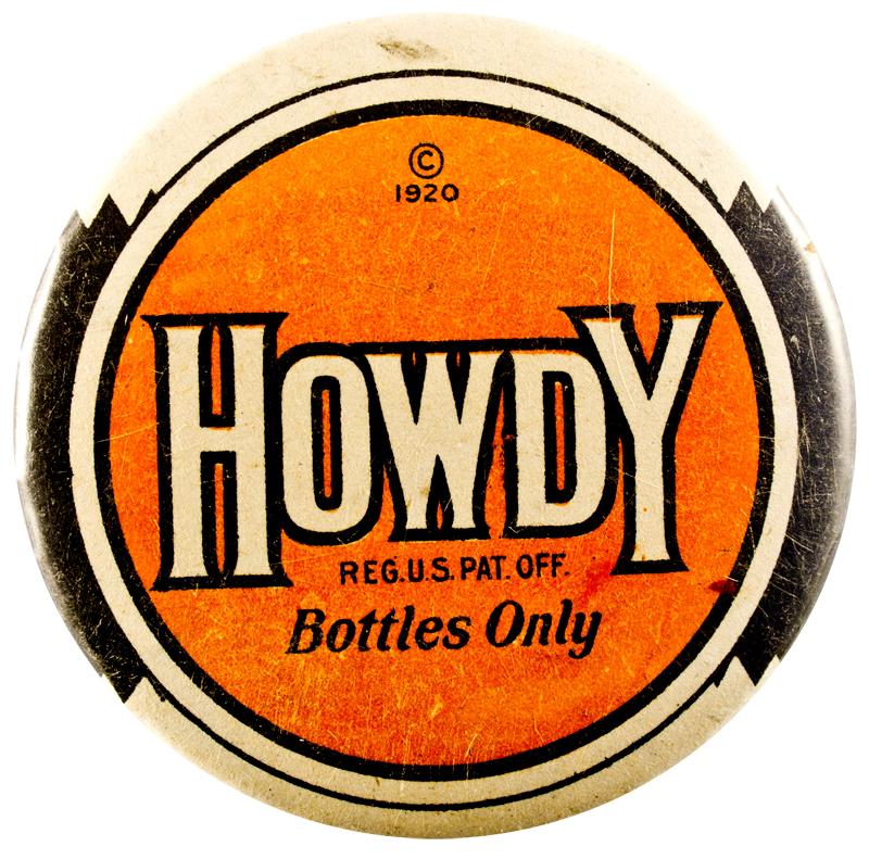 Advertising | “A Pair of Howdy Bottle Company advertising mirrors. Both mirrors are identical. Each has a white and blue 4mm circumferential border. The middle of the obverse is a bright orange with a boldly written ‘Howdy’ logo. There as a small © 1920 on the top of the obverse of both. Each mirror reverse is near perfect.” | © 1920/ Howdy/ Reg. US. Pat. Off. / Bottles Only| Overall good condition