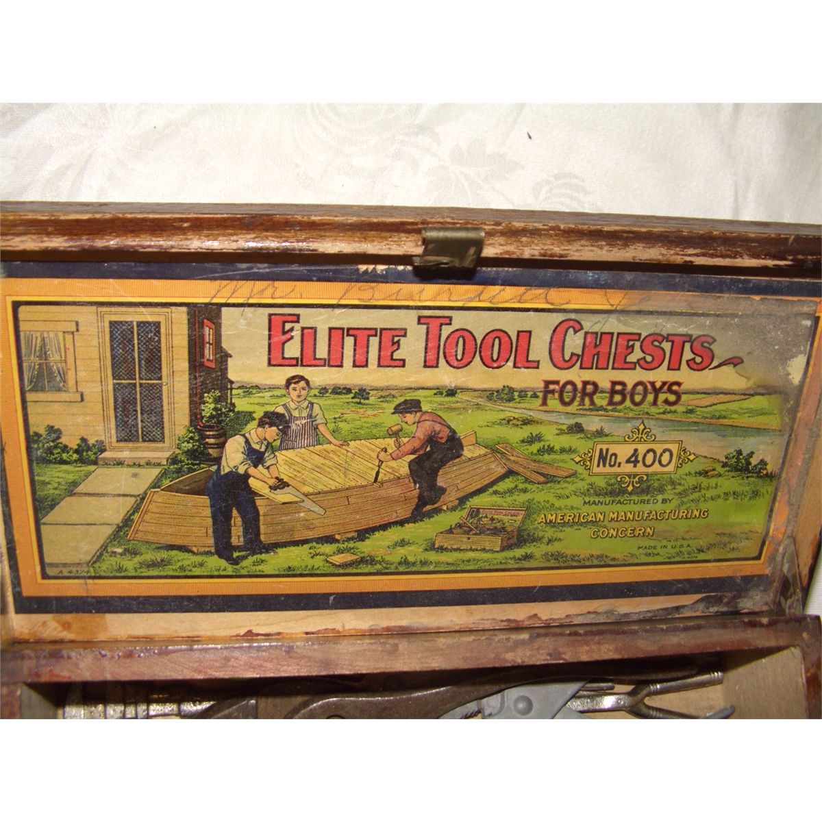 c1920's Elite tool chest for boys No 400 by American Mfg., with tools original to box?