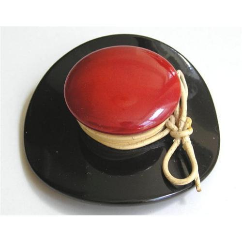 <tr><td>Title:c1930s Bakelite Black & Red Hat Pin</td></tr>