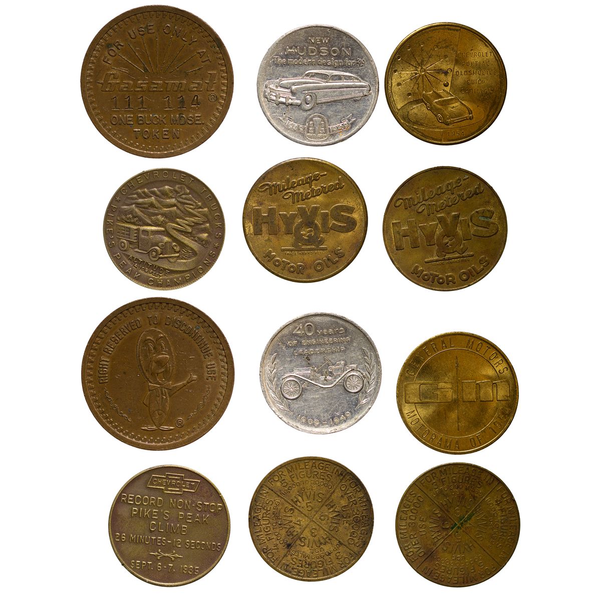 Lot of 6. 1) Hudson Auto 40 Anniversary. 2) Chevrolet Pikes Peak Climb. 3) GM 1954. 4) & 5) Hyvis Motor Oil. 6) Gasamal GF $1 IM. - Weber Collection