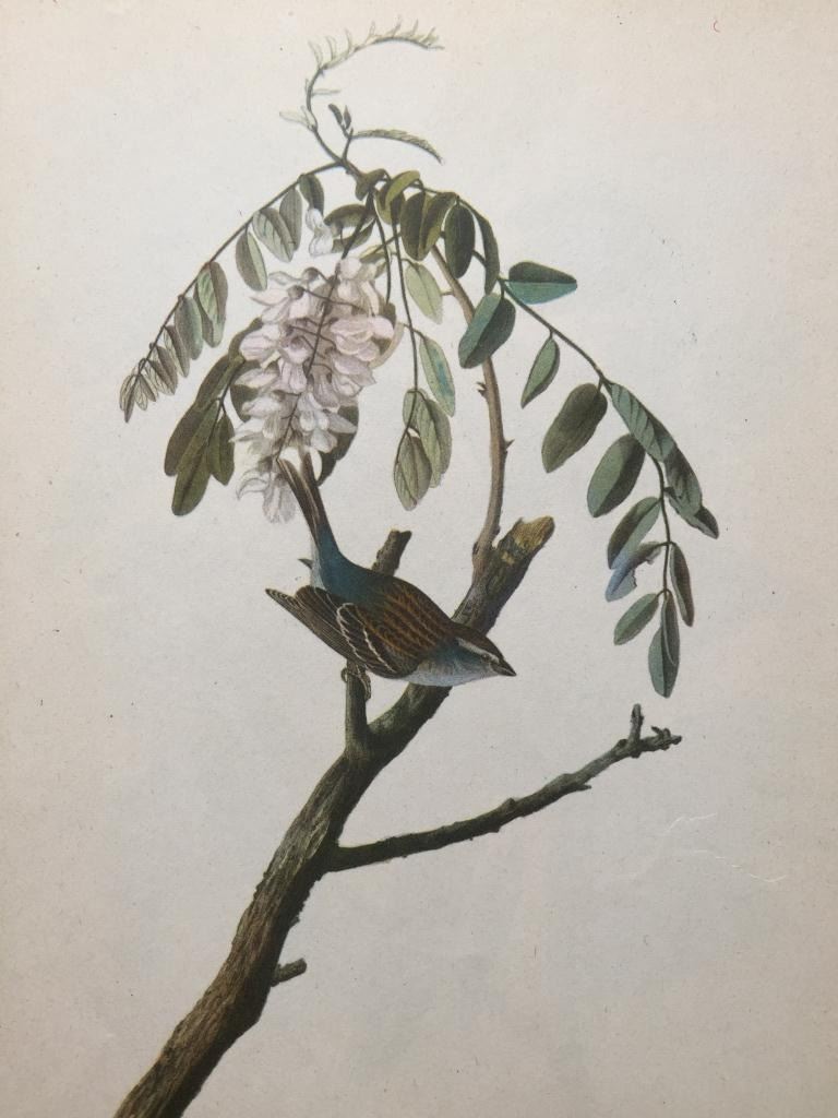 John James Audubon book plate print, from a 1946 edition of "The Birds Of America". # 104 Chipping Sparrow. 8 1/2" X 11 1/2". Comes with mat. Â