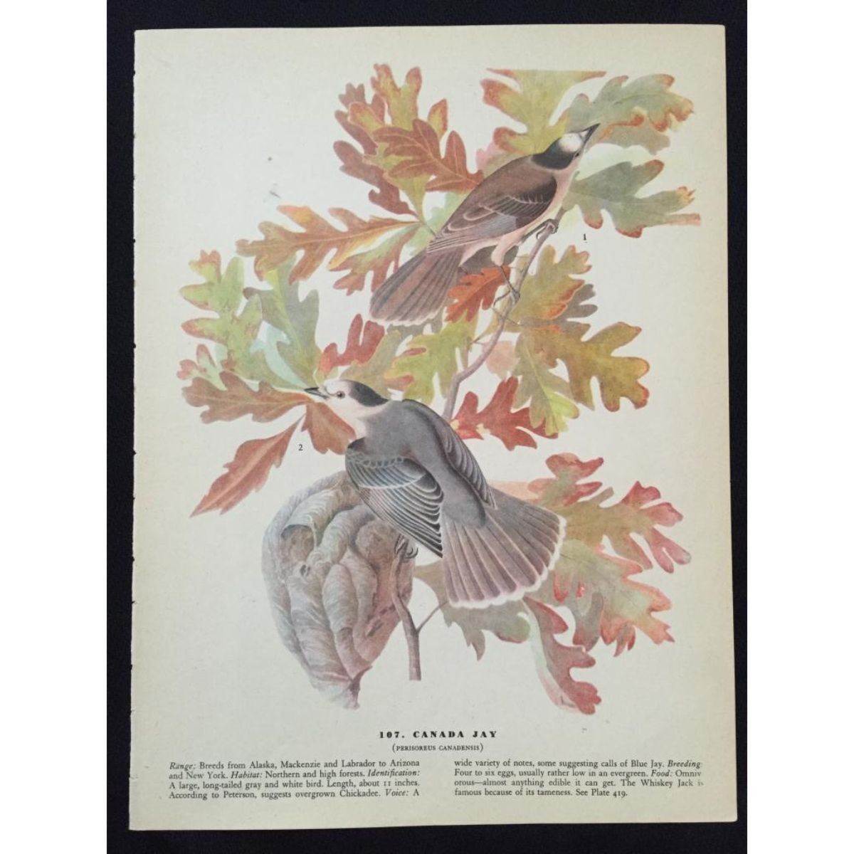 John James Audubon, book plate print, # 107 Canadian Jay, taken from a 1946 edition of "The Birds Of America." 8 1/2" X 11 1/2" print size. Comes with 11" X 14" mat.
