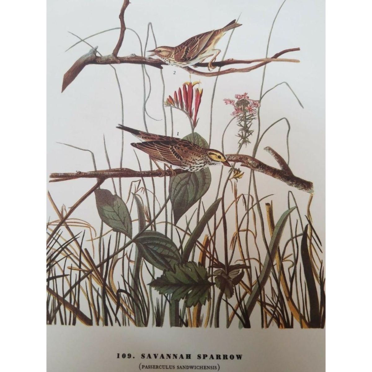 John James Audubon, book plate print, #109 Savannah Sparrow, taken from a 1946 edition of "The Birds Of America". 8 1/2" X 11 1/2". Comes with 11" X 14" mat for framing.