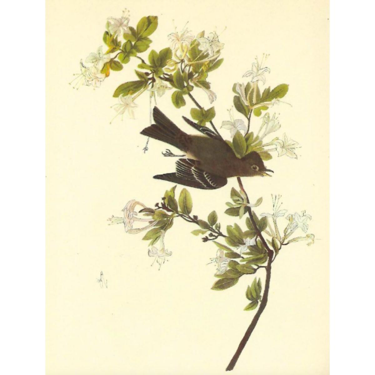 John James Audubon book plate print, from a 1946 edition of "The Birds Of America." # 115 Wood Pewee. 8 1/2" X 11 1/2". Comes with 11"x14" mat.