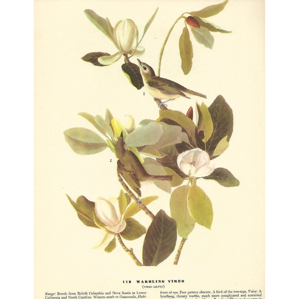 John James Audubon book plate print, from a 1946 edition of "The Birds Of America." # 118 Warbling Vireo. 8 1/2" X 11 1/2". Comes with 11"x14" mat.