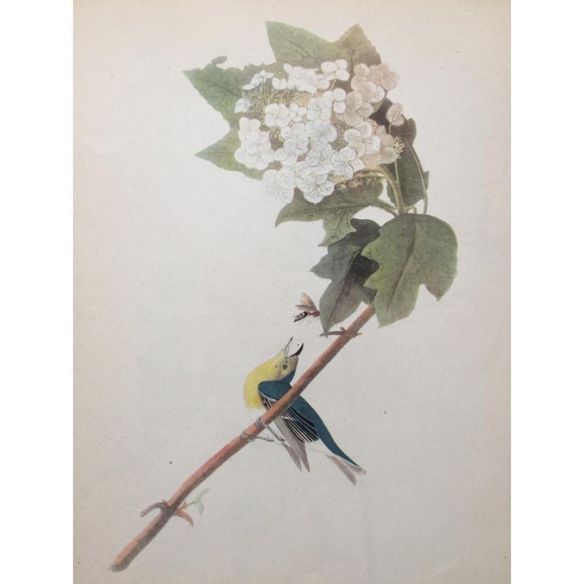 John James Audubon book plate print, from a 1946 edition of "The Birds of America." # 119 Yellow-Throated Vireo. 8 1/2" X 11 1/2". Comes with mat.