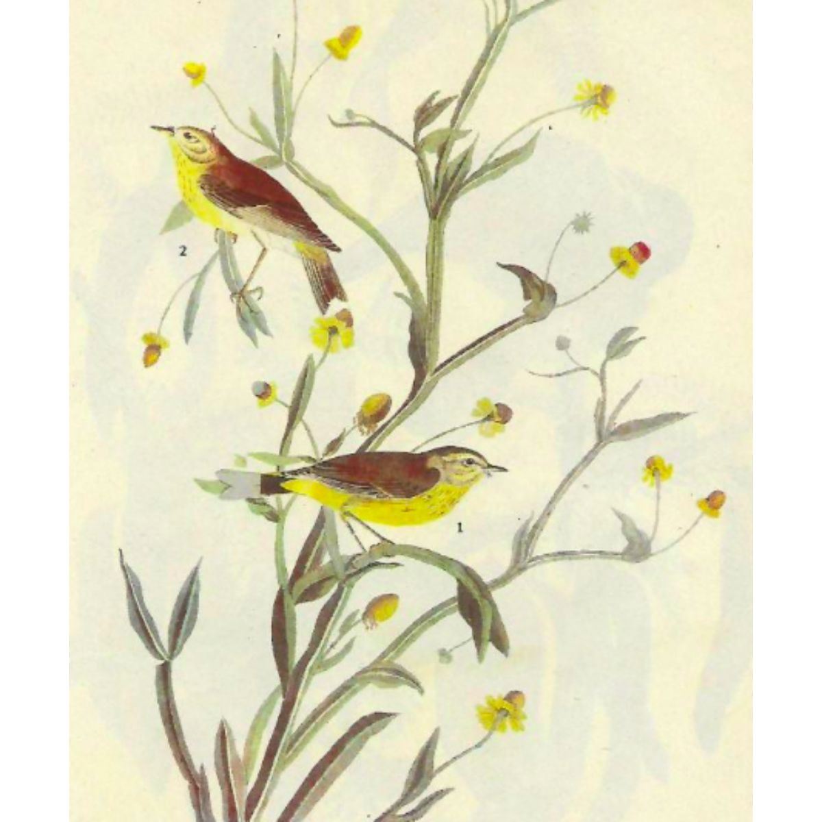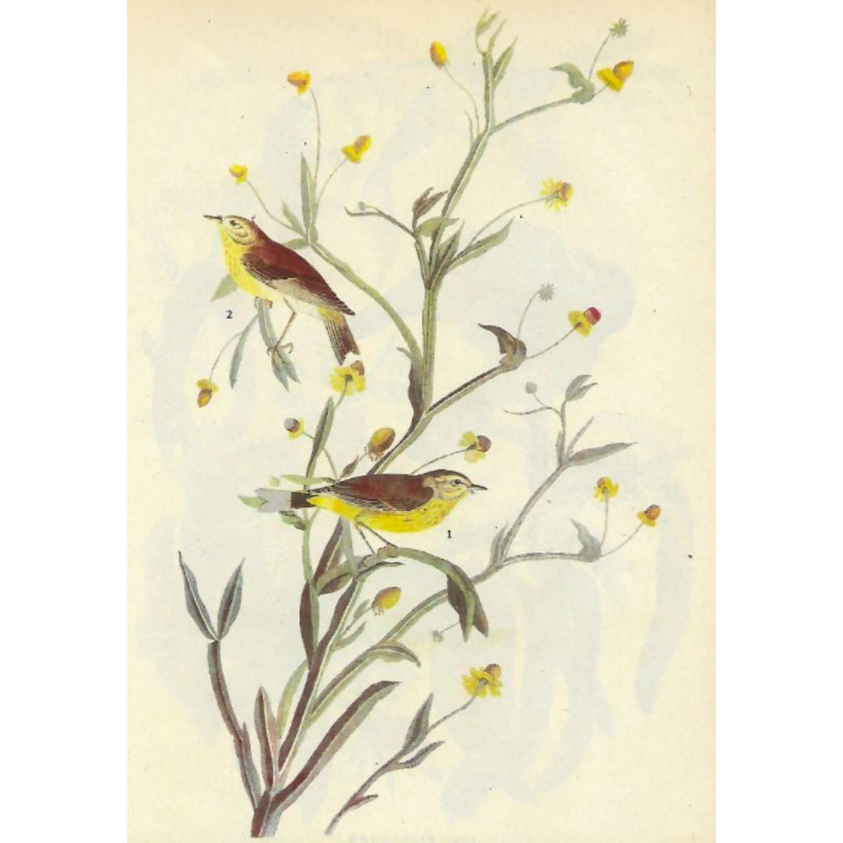 John James Audubon print, from a c1946 edition of The Birds of America. # 145 Yellow Palm Warbler book plate print. 8 1/2" X 11 1/2". Comes with 11" X 14" mat.