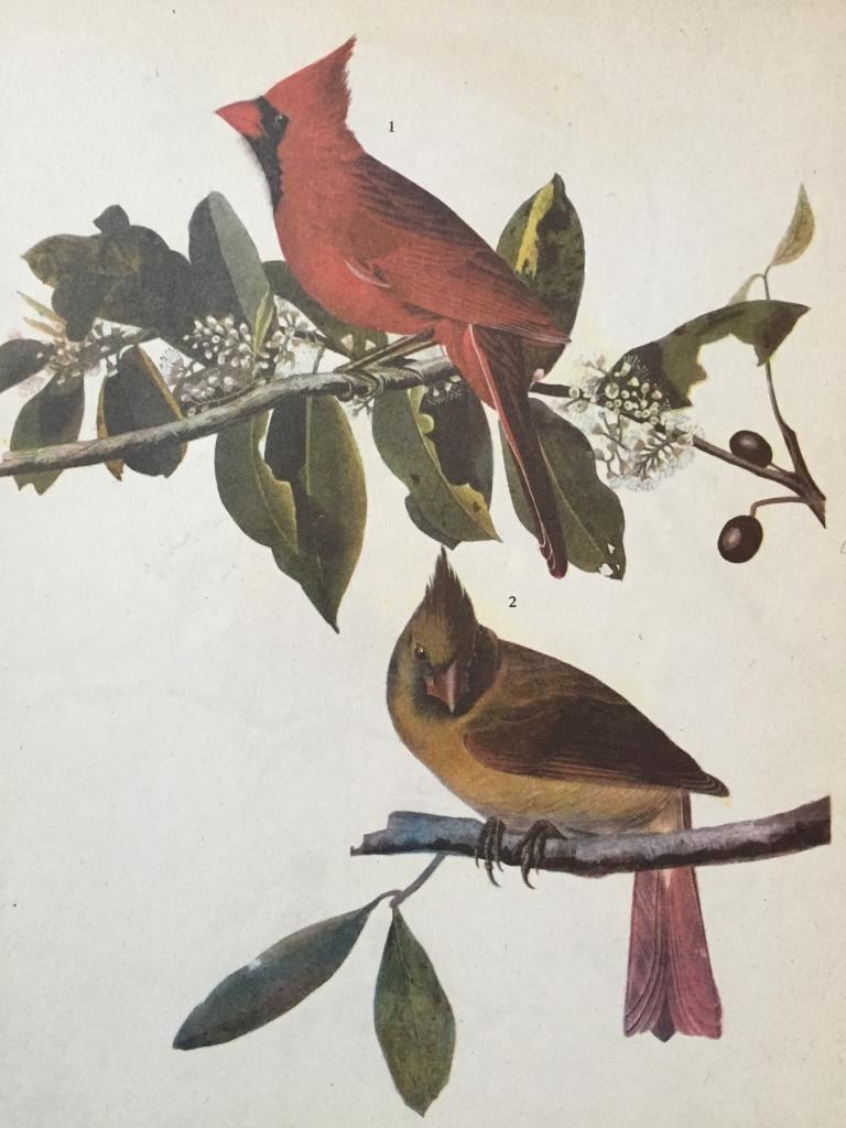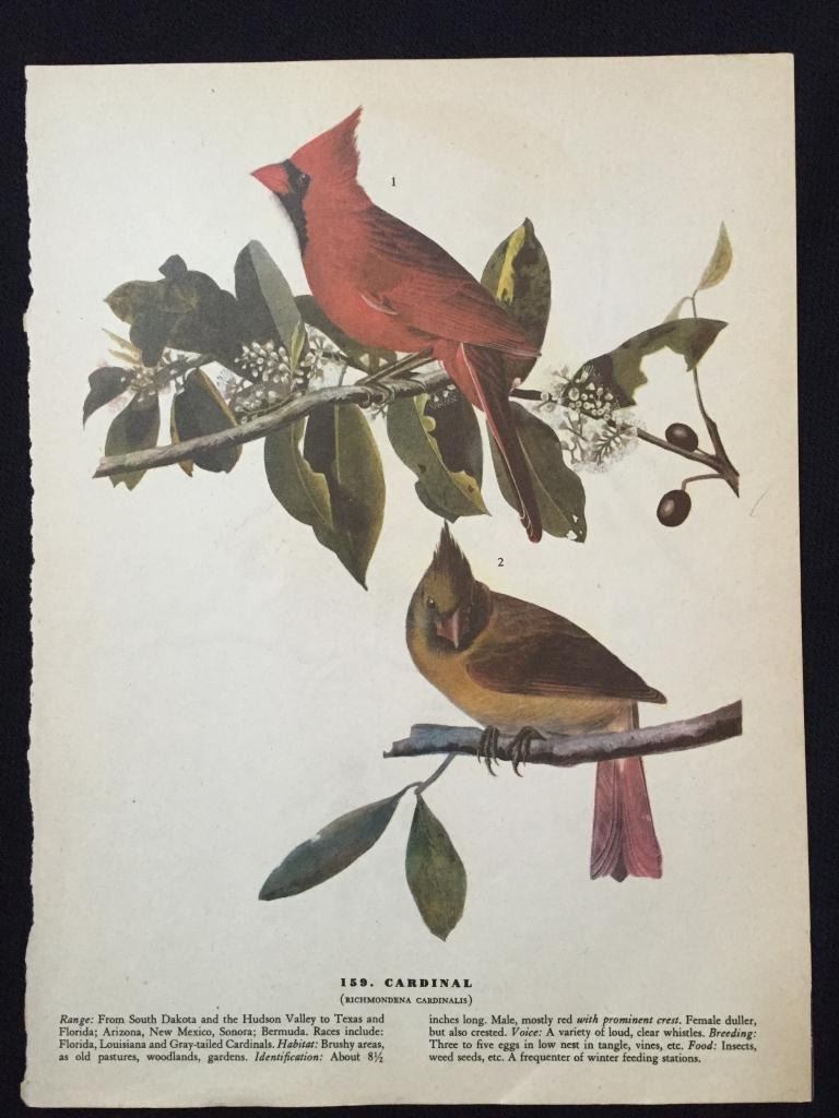 John James Audubon, book plate print, # 159 Cardinal, take from a 1946 edition of "The Birds Of America". 8 1/2" X 11" print size. Comes with 11" X 14" mat.