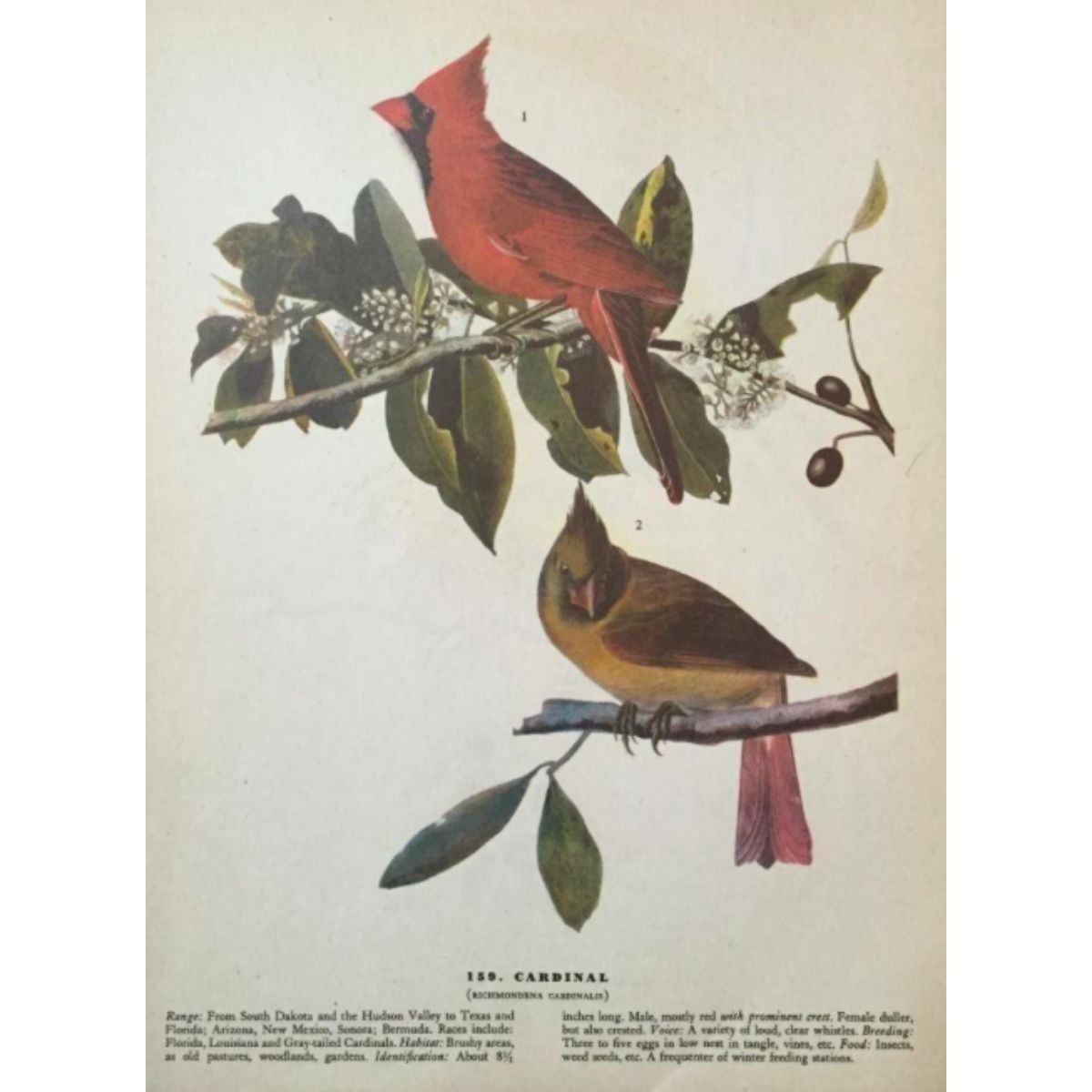 John James Audubon, book plate print, # 159 Cardinal, taken from a 1946 edition of "The Birds Of America". 8 1/2" X 11 1/2". Comes with 11" X 14" mat. Â