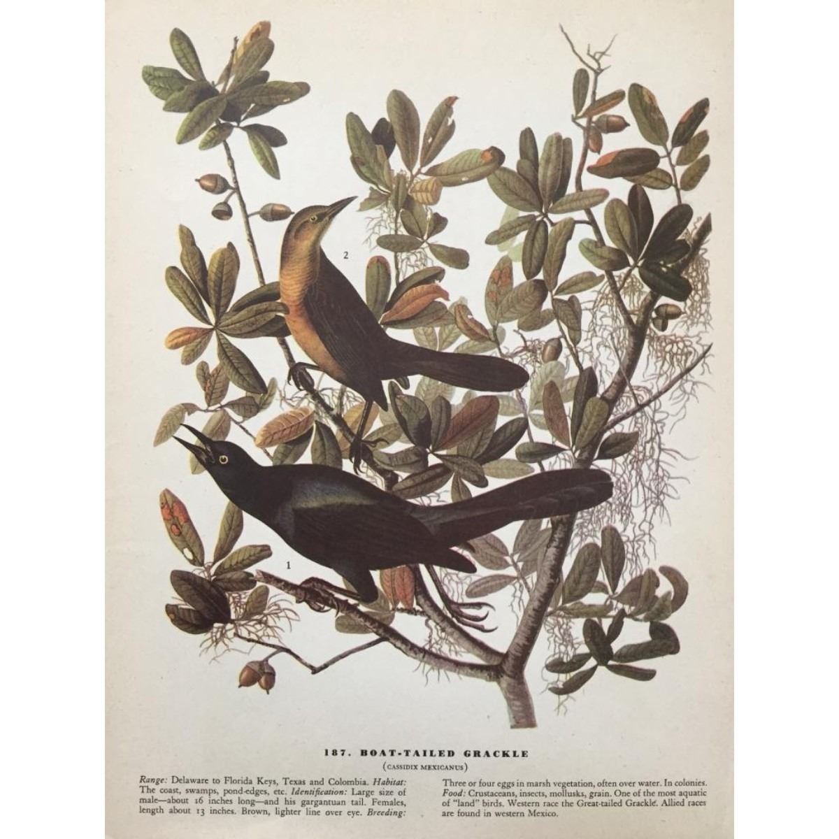 John James Audubon book plate print, from a 1946 Edition of "The Birds of America." # 187 Boat -Tailed Grackle. 9" X 11". Comes with mat.