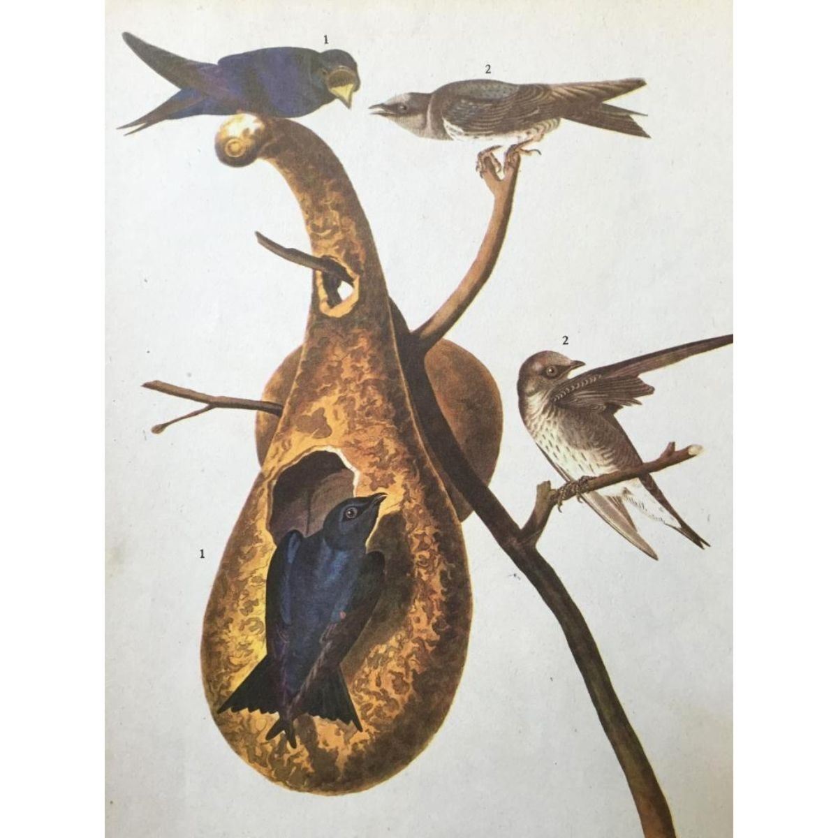 John James Audubon book plate print, from a 1946 edition of "The Birds Of America". #22 Purple Martin. 8 1/2" X 11 1/2". Comes with 11'x 14" mat.