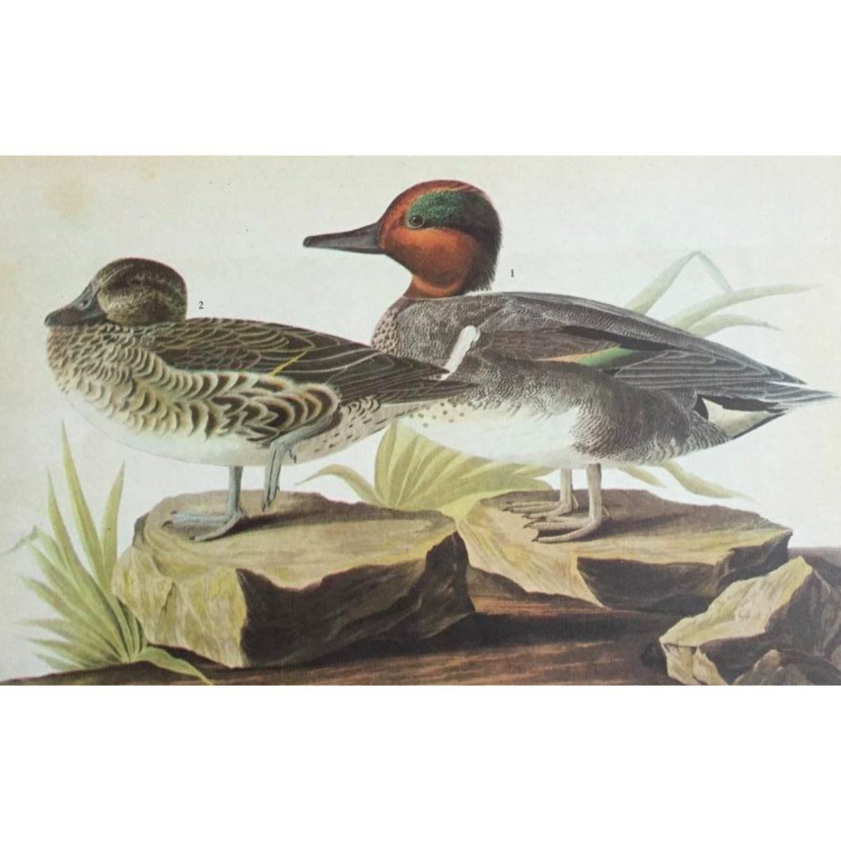 John James Audubon, book plate print, from a 1946 edition of "The Birds Of America. Green-Winged Teal Duck # 228. 8 1/2" X 11". Comes with 11" X 14" mat.